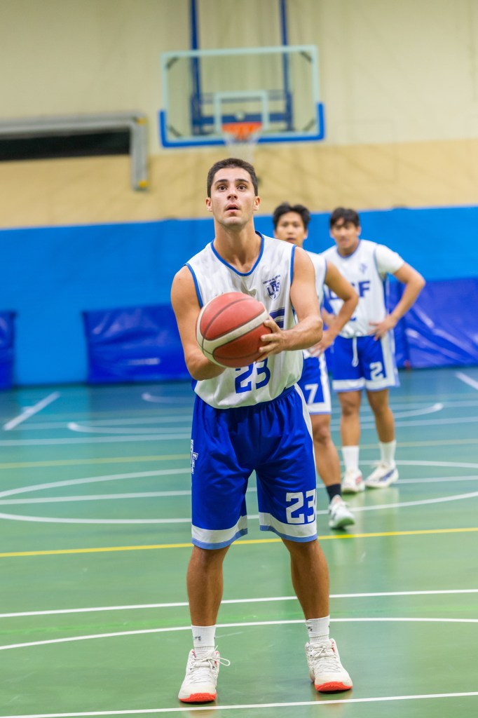 Arriva, saluta gli ufficiali di campo, scambia 2 chiacchiere con gli avversari, si fa passare la palla, piazza un 7/7 da 3 senza muovere un muscolo dall’orecchio in giù, poi se ne va in tribuna a parlare di lavoro lasciandoci nella nostra povertà tecnica. BORGHESE.